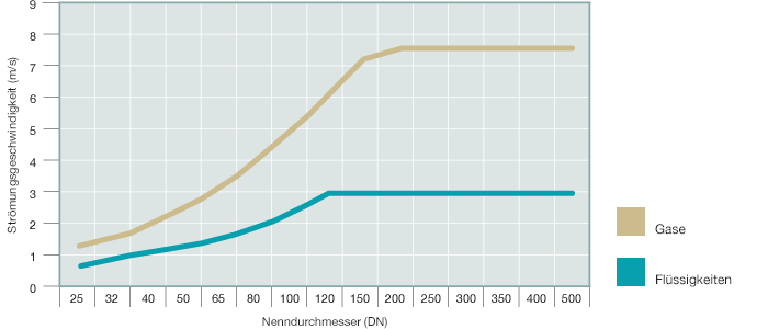 Kriterien zur Bestimmung der Notwendigkeit des Einbaus von Innenhülsen – für die Strömungsgeschwindigkeiten die über die Kurve reichen, sollten die Hülsen benutzt werden