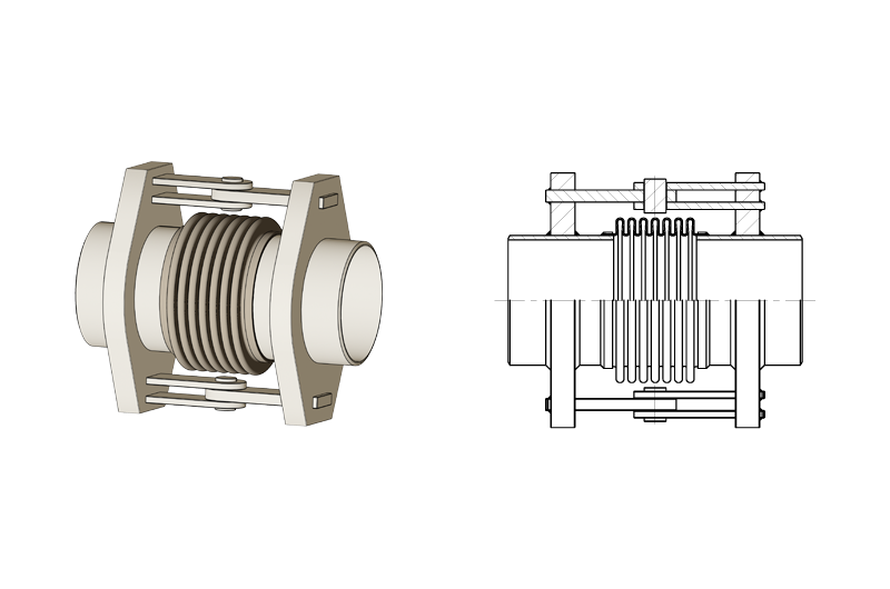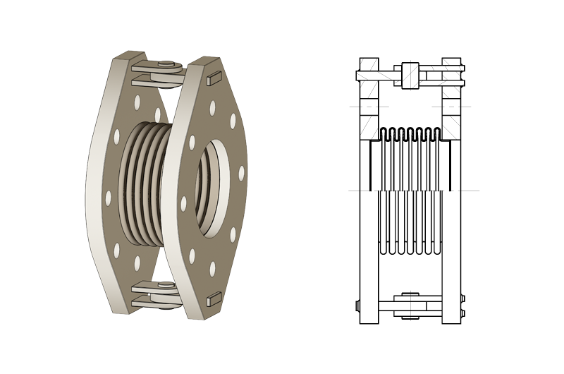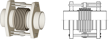 Zglobni kompenzatori se sastoje od metalnog mijeha i prirubnica ili cijevnih nastavaka sa zglobovima kompenzatora. Zglobni kompenzator može prihvatiti samo kutni pomak. Sila od unutarnjeg tlaka neutralizirana je u spreznim zglobovima i u ovakav cijevni sustav nije potrebno instalirati robusne čvrste točke i vodilice. Par zglobnih kompenzatora je prikladan za kompenzaciju cjevovoda s velikim pomakom.
